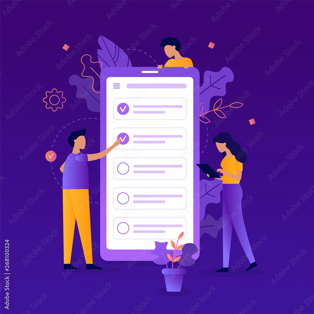 Wall mural teamwork. mark a task as completed in the task manager app. time management concept. flat vector ill - Wall murals Wall mural teamwork. mark a task as completed in the task manager app. time management concept. flat vector ill - Wall murals