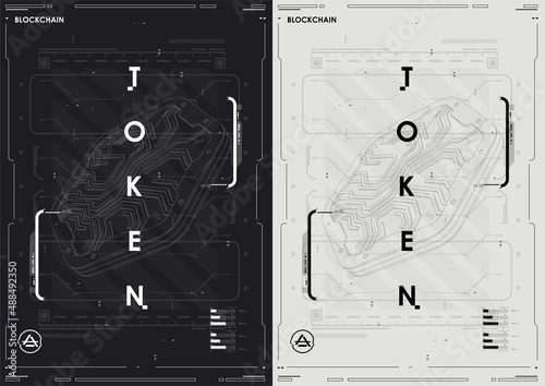 The watermark will not be included on Wall mural.: Tech abstract poster template with hud elements - cyber culture, modern flyer for web and print - hack