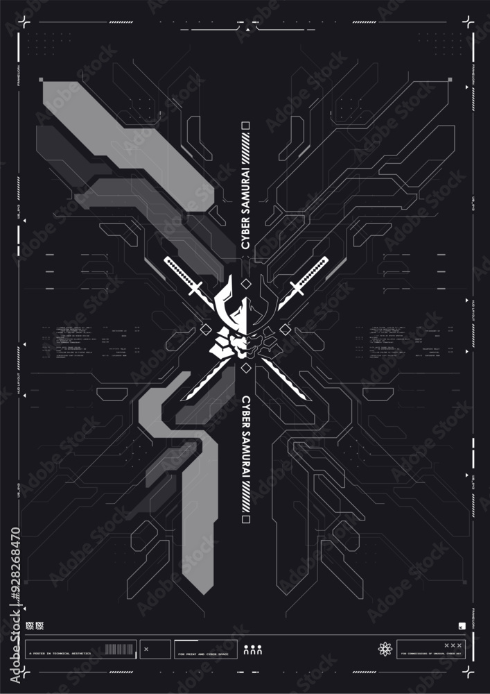 Wall mural tech abstract poster template with hud elements. cyber culture, modern flyer for web and print. hack