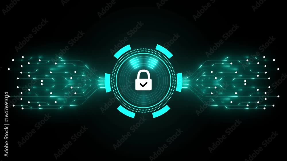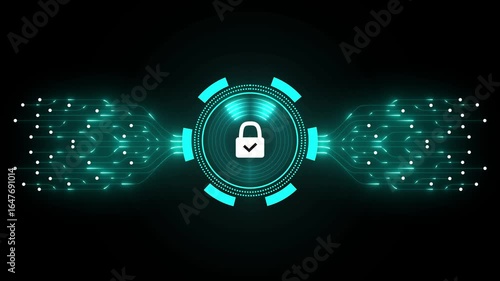 Wall mural tech background for unlocking ui system. lock scan with digital hud circle and ai circuit board. tou