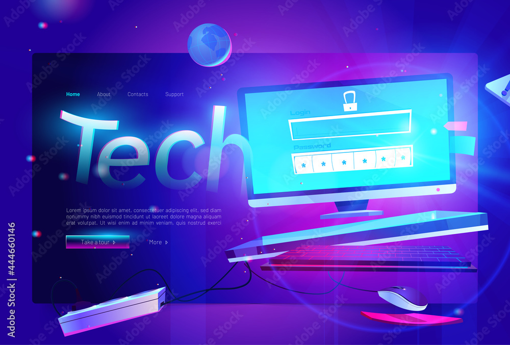 Wall mural tech banner. concept of modern technologies, digital communication, internet and network system. vec
