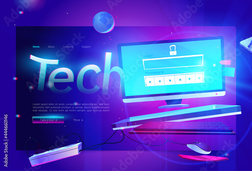 Wall mural : Tech banner - concept of modern technologies, digital communication, internet and network system - vec