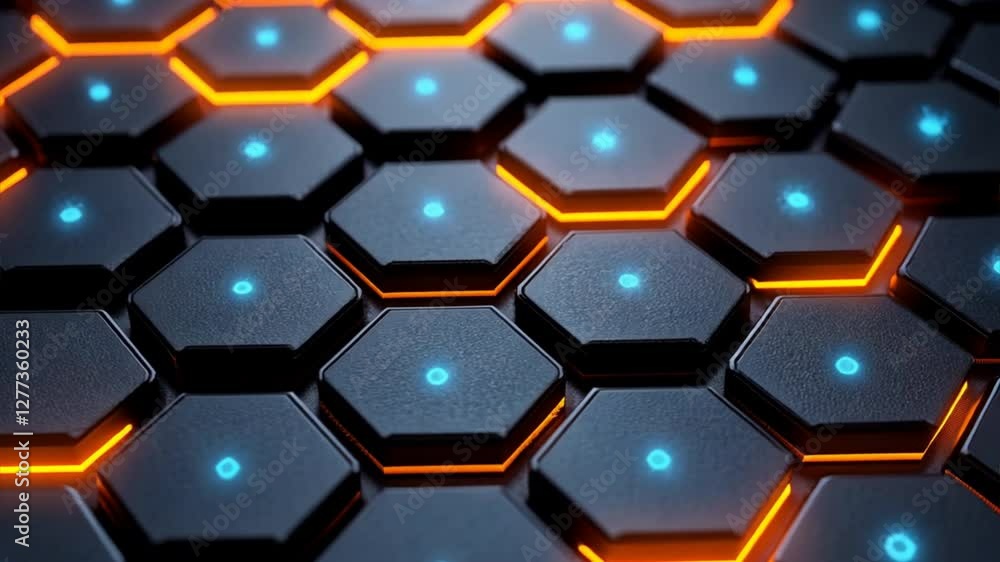 Wall mural : Tech grid: a cutting-edge view of hexagonal grid, emanating a sense of futuristic technological adva