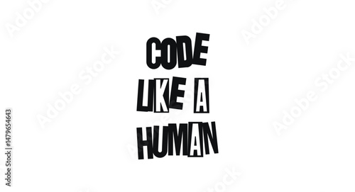 Tech phrase code like a human in bold creative cut-out font - smart message for developers with soul - Wall mural