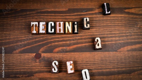 Wall mural technical seo. text formed from moving letters, stop motion, 4k