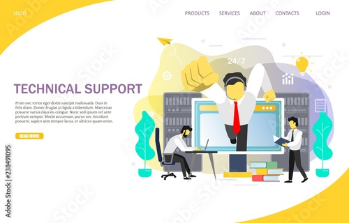 The watermark will not be included on Wall mural.: Technical support landing page website vector template