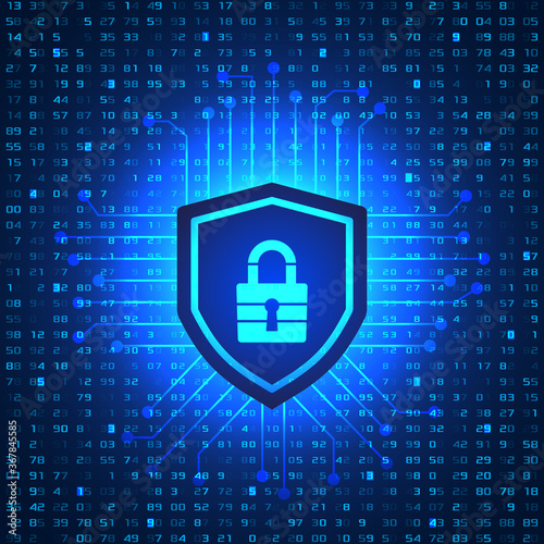 Wall mural techno background with cybersecurity lock cryptocurrency and passwords.