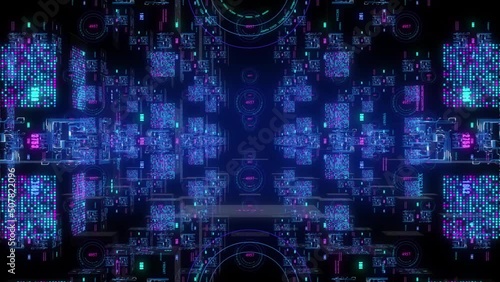 Wall mural : Technological abstract futuristic background moving in big data digital cyberspace