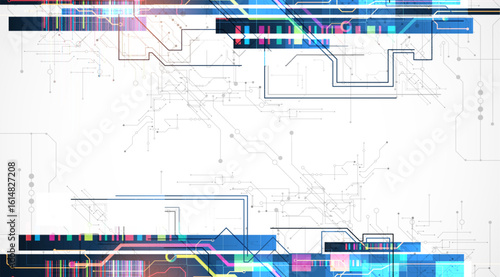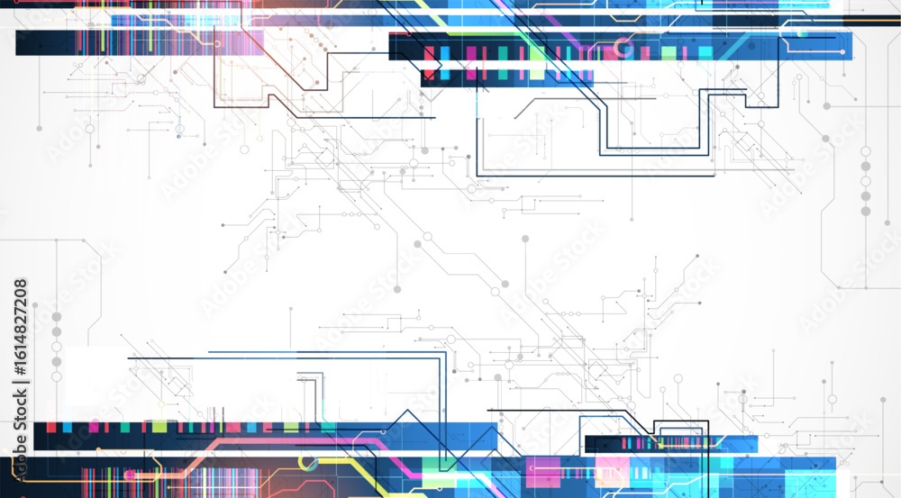 Wall mural technological background with colorful squares glowing on a blue gradient. vector. - Wall murals Wall mural technological background with colorful squares glowing on a blue gradient. vector. - Wall murals