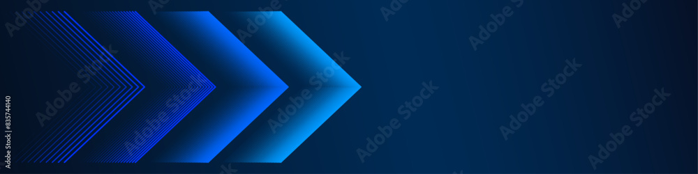 Wall mural : Technology abstract background with glowing arrow lines pattern - horizontal shiny blue geometric lux