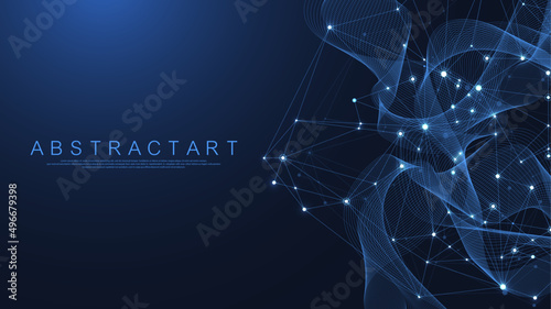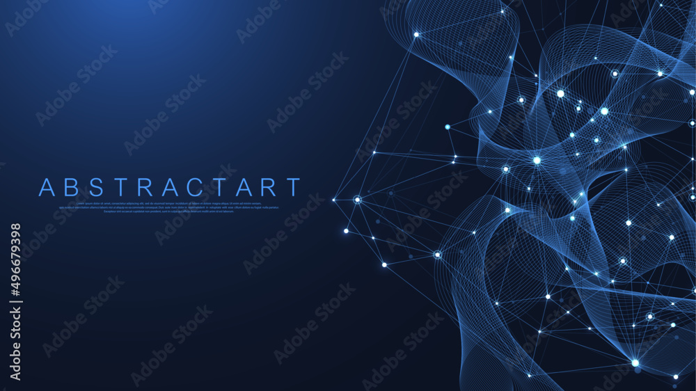 Technology abstract lines and dots connection background - connection digital data and big data conceWall mural