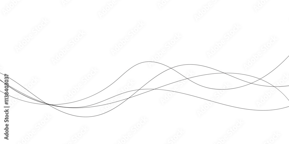 The watermark will not be included on Wall mural.: Technology abstract lines on white background - undulate grey wave swirl, frequency sound wave, twist
