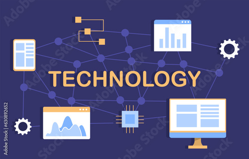 Wall mural technology and devices concept. computer, smartphone and chips. graphs and diagrams. synchronization