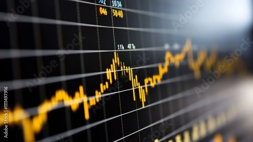 Wall mural : Technology background featuring a dynamic stock market trend chart with data visualization, fluctuat