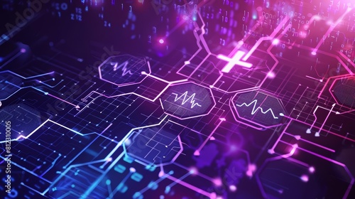 Wall mural technology background of a digital health interface in cyber color, designed as a template backgroun - Wall murals Wall mural technology background of a digital health interface in cyber color, designed as a template backgroun - Wall murals