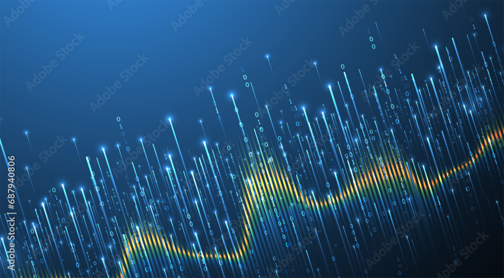 Wall mural technology background. big data concept. binary computer code. hand drawn vector illustration.