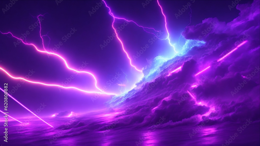 The watermark will not be included on Wall mural.: Technology background: 3d render, abstract lighting in neon lines and waves with vray tracing style