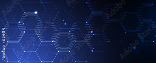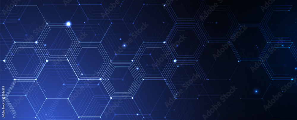 Wall mural technology banner design with hexagons abstract background. - Wall murals Wall mural technology banner design with hexagons abstract background. - Wall murals