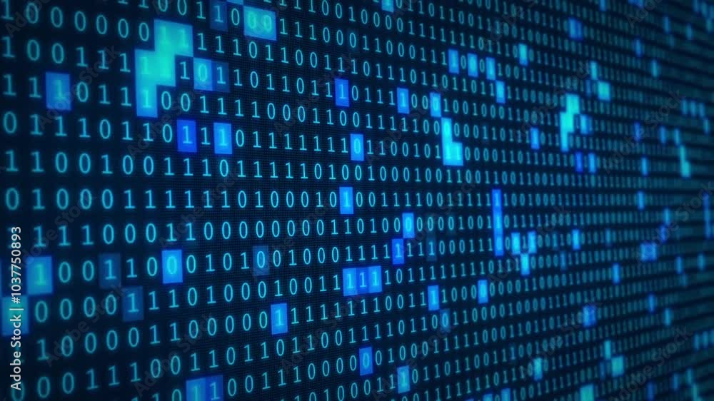 The watermark will not be included on Wall mural.: Technology binary coding blue background video
