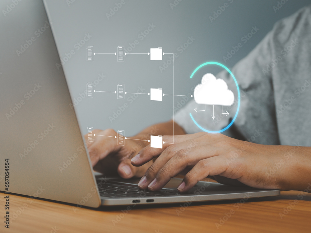 Technology cloud storage date online, backup information on server internet network global share filWall mural