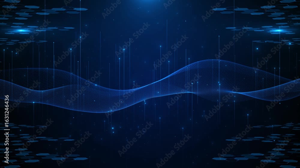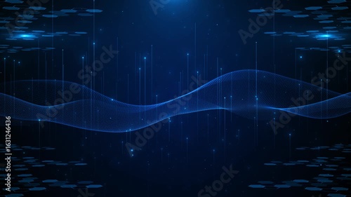 The watermark will not be included on Wall mural.: Technology digital cyber wave background - motion waving dots texture big data glowing particles - cyb