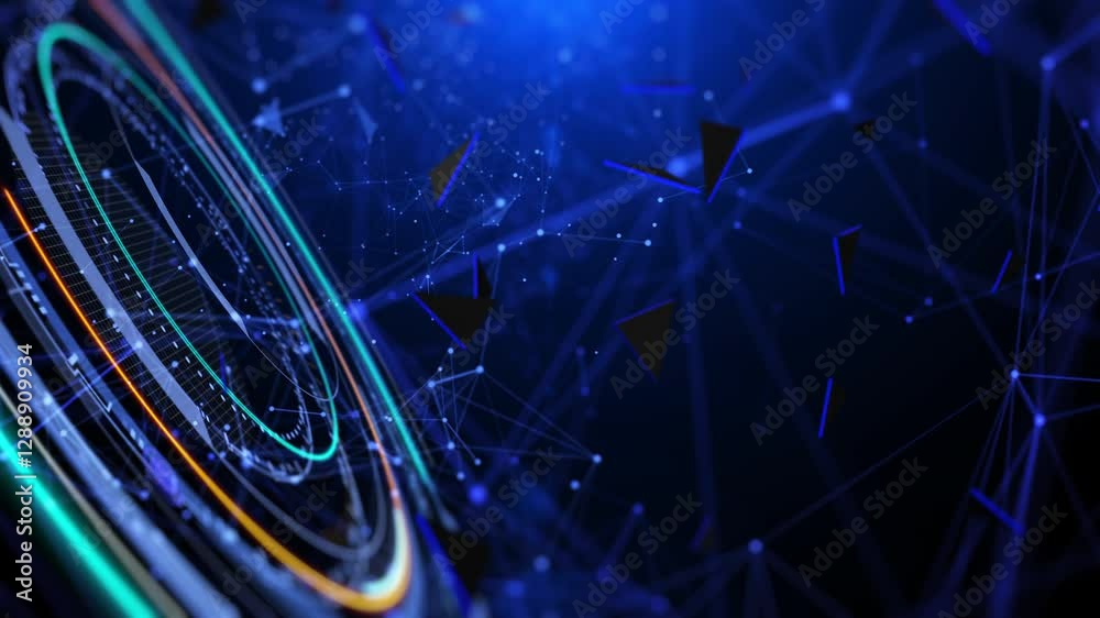 The watermark will not be included on Wall mural.: Technology hud ui holographic advance futuristic circle spinning data interface transferring 4k moti