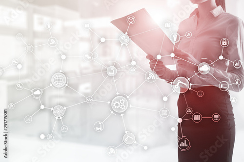 Wall mural : Technology industrial business process workflow organisation structure on virtual screen -