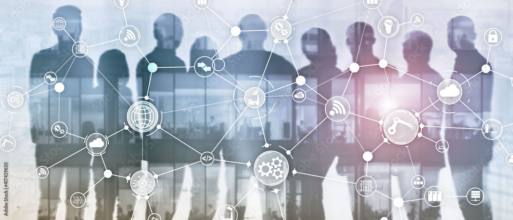 Wall mural technology industrial business process workflow organisation structure on virtual screen. iot smart