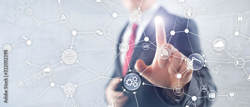 Wall mural technology industrial business process workflow organisation structure on virtual screen. iot smart