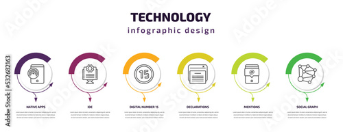 The watermark will not be included on Wall mural.: Technology infographic template with icons and 6 step or option - technology icons such as native app