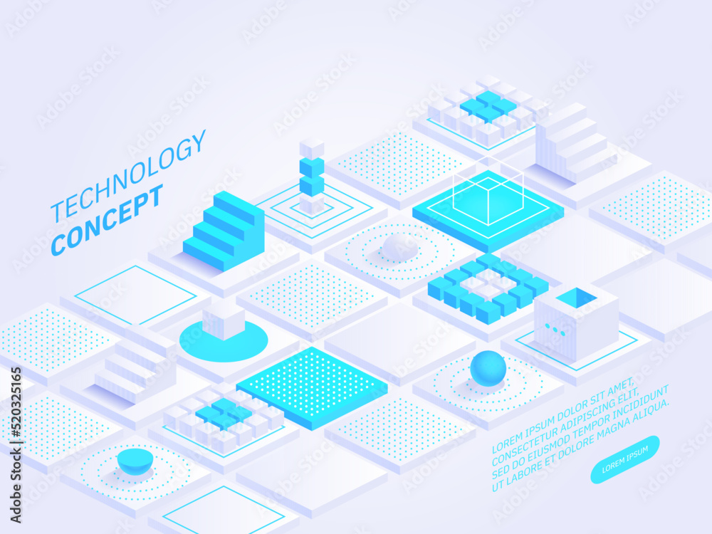 Wall mural technology isometric concept vector illustration. abstract data storage or blockchain. personal data