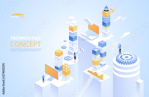 Wall mural : Technology isometric concept - cryptocurrency and blockchain -