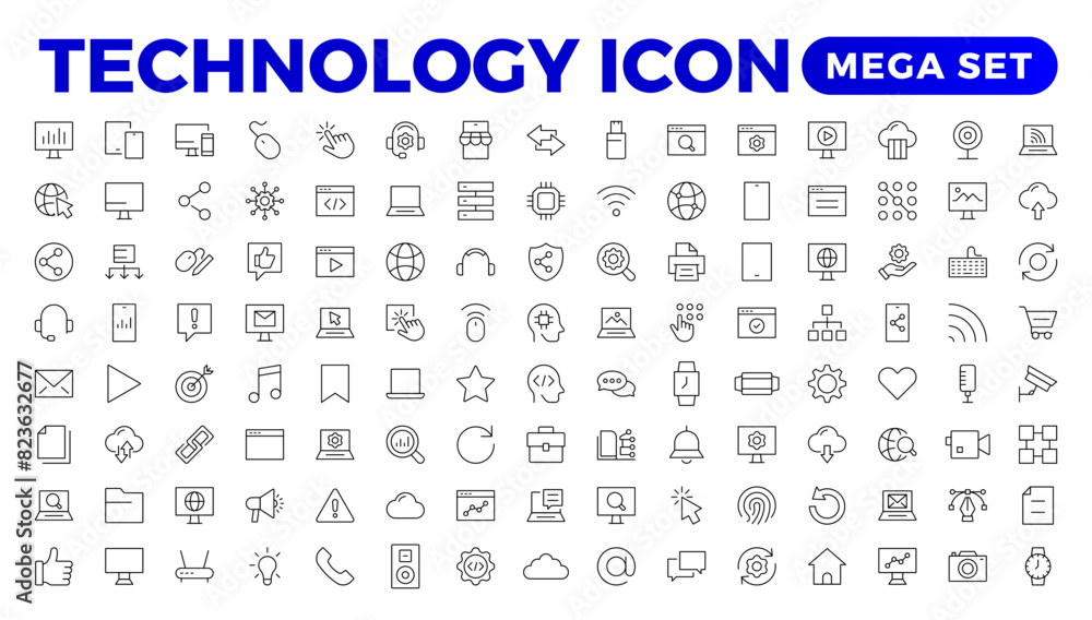 Wall mural technology line icons. technological and device in various industries. icons for websites, applicati - Wall murals Wall mural technology line icons. technological and device in various industries. icons for websites, applicati - Wall murals