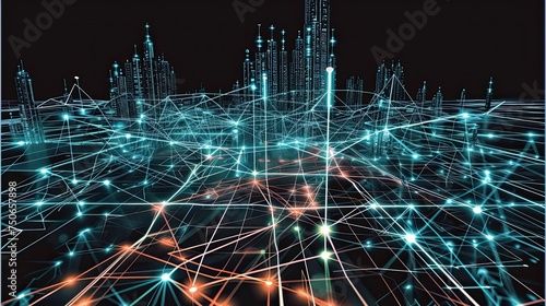 Wall mural technology or technical data, the concept of a network connection to the internet in a city abstract