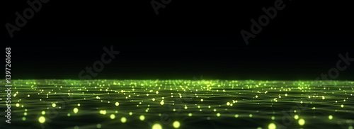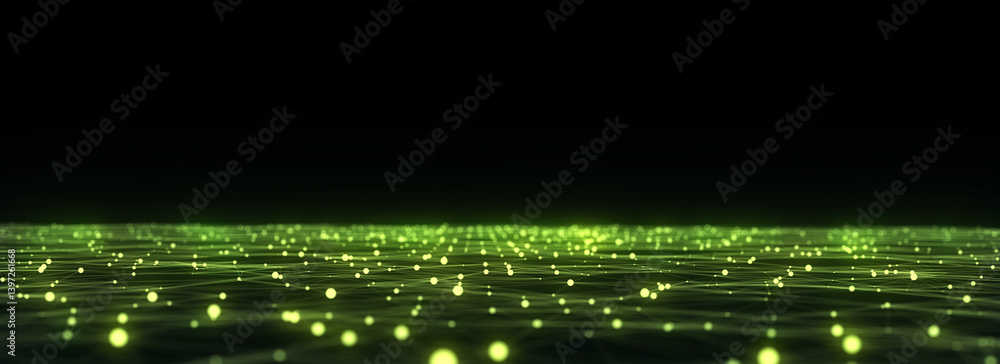 Wall mural technology perspective grid in infinity. abstract digital wireframe floor with lines. dark wave in d