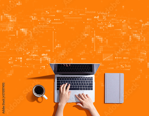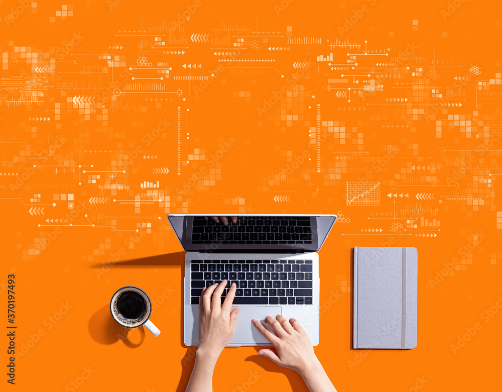Wall mural technology screen with person using a laptop computer - Wall murals Wall mural technology screen with person using a laptop computer - Wall murals