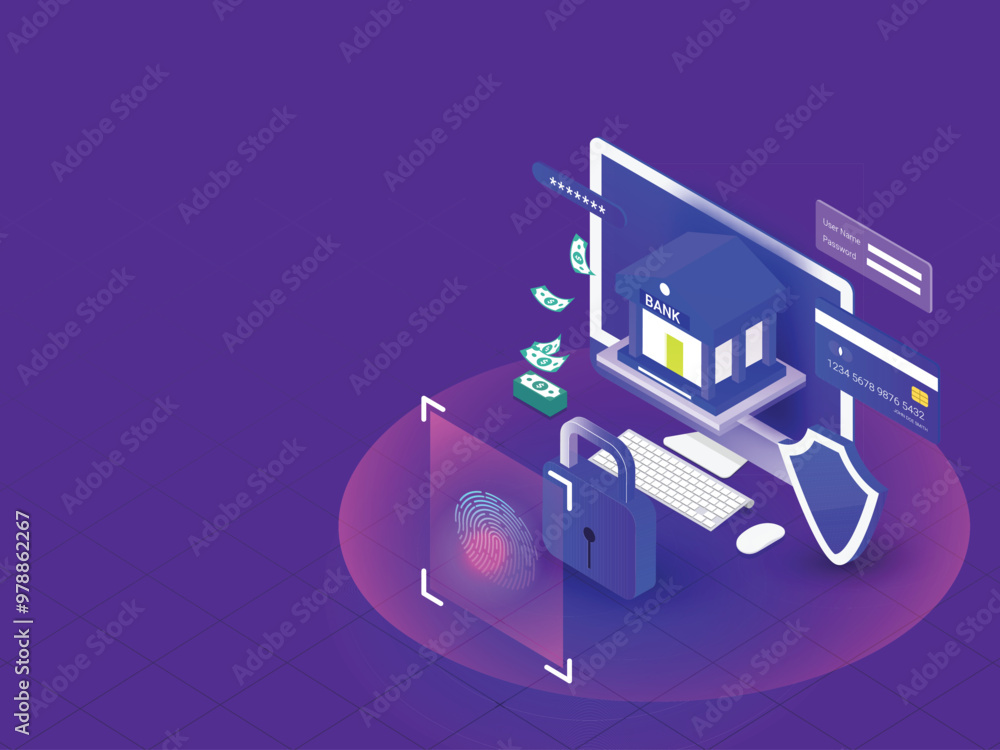 The watermark will not be included on Wall mural.: Technology security concept - financial cyber security background -