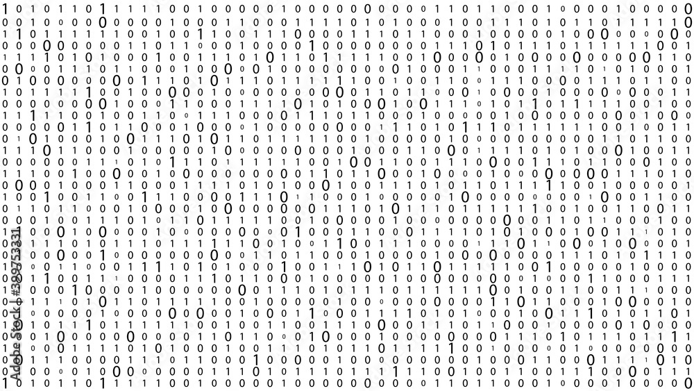 Wall mural technology stream binary code. digital illustration. white matrix background. programming, coding, h