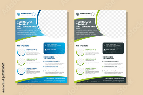 The watermark will not be included on Wall mural.: Technology training and workshop flyer design template use vertical layout - circle space for photo c