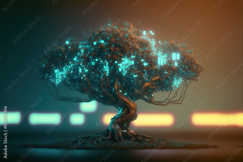 The watermark will not be included on Wall mural.: Technology tree - network connection or big data technology concept, artificial intelligence and tec