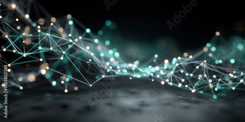 The watermark will not be included on Wall mural.: Technology wallpaper showing a flowing network of luminous points and connecting lines, digital abst