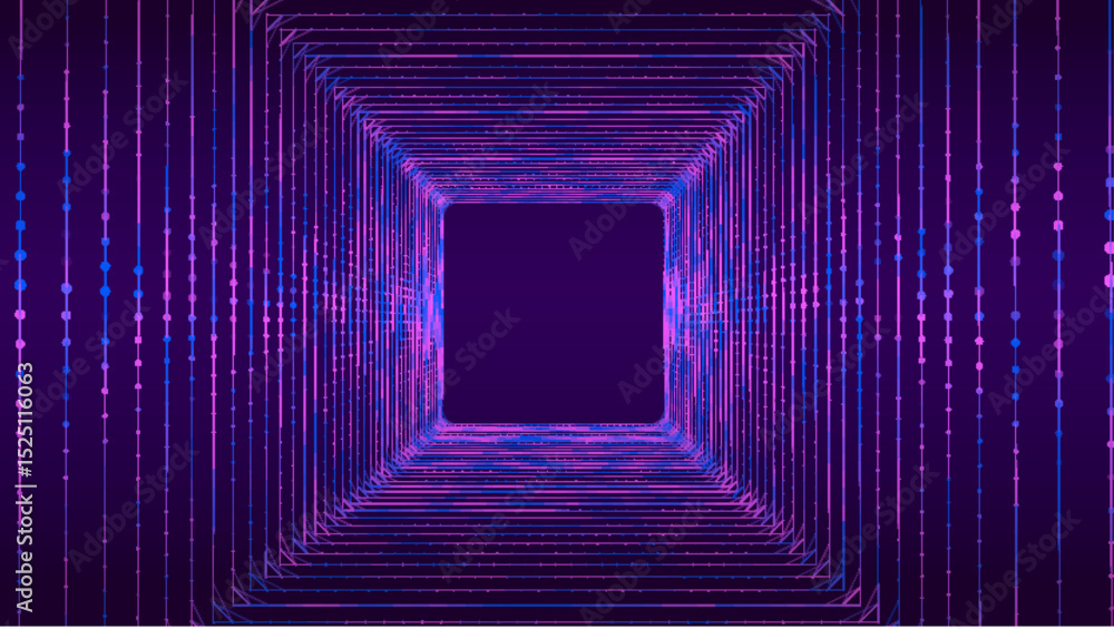 The watermark will not be included on Wall mural.: Technology wireframe square tunnel on blue background - futuristic 3d wormhole grid - big data visuali