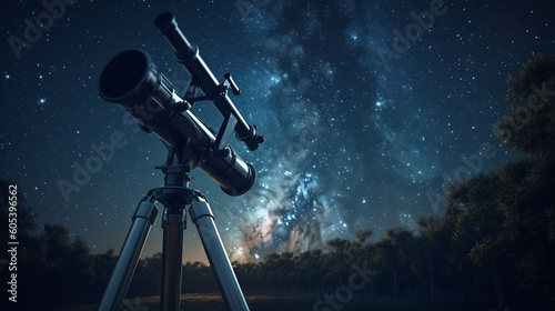 The watermark will not be included on Wall mural.: Telescope in the starry background - generative ai