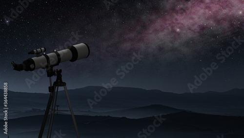 The watermark will not be included on Wall mural.: Telescope placed in a mountain site pointing at the milky way, concept of astronomical observation,