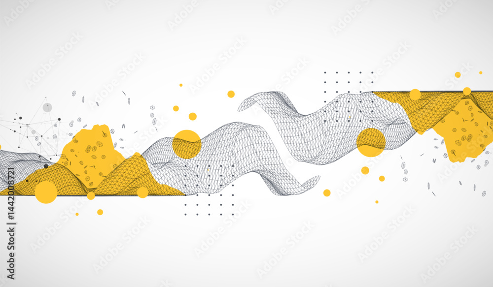 Wall mural template for science and technology presentation. wireframe waves. plexus style background.