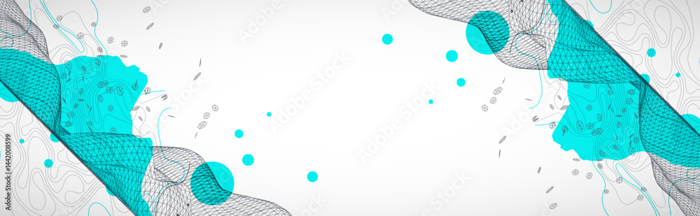 Wall mural template for science and technology presentation. wireframe waves. plexus style background.