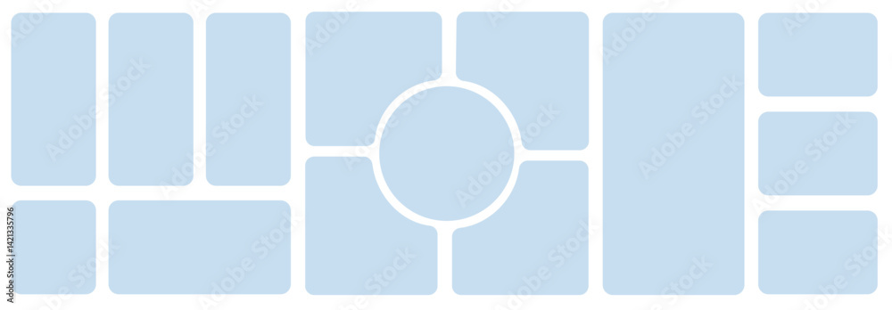 Wall mural : Template of photo montage - 14 white frames design composition for gallery for website with round at