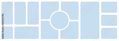 Wall mural template of photo montage. 14 white frames design composition for gallery for website with round at  - Wall murals Wall mural template of photo montage. 14 white frames design composition for gallery for website with round at - Wall murals