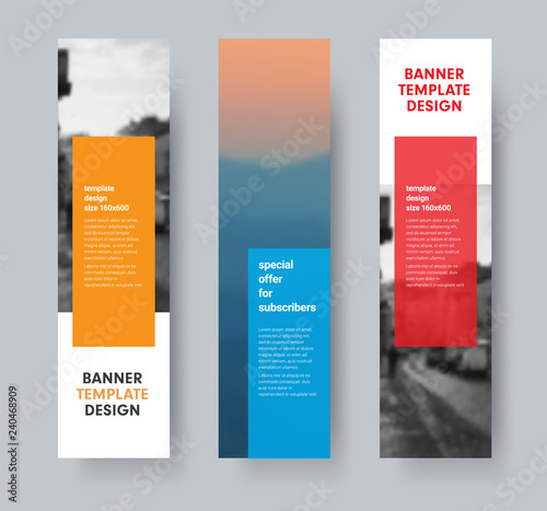 Wall mural template of vertical vector banners with transparent colored dice for text and place for photo.