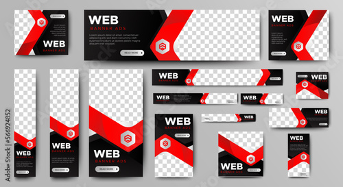 The watermark will not be included on Wall mural.: Templates of web banners with place for images - vertical, horizontal and square banner layouts - mult
